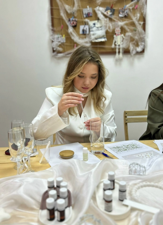 — Оформление готового продукта в стильный флакон, который можно забрать домой.