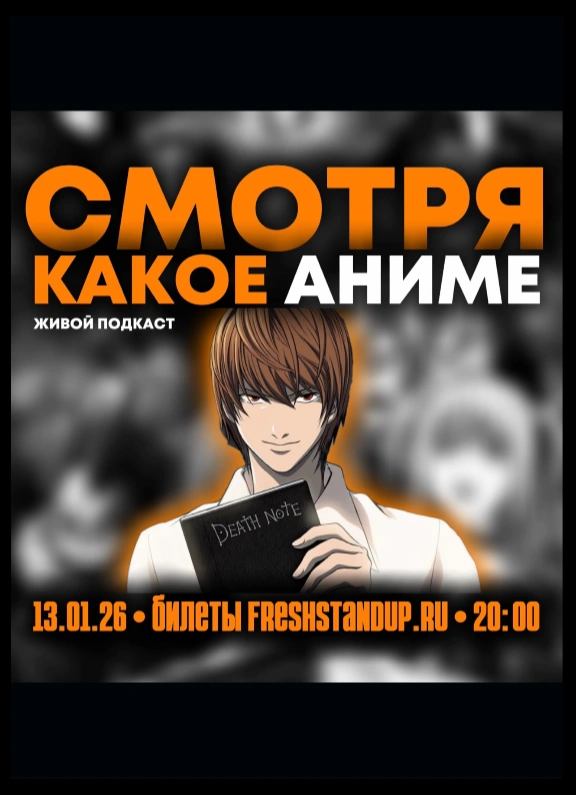 Стендап Комики соберутся, чтобы обсудить что-то из японской анимации между собой и со зрителями. Будут много спорить, шутить и обсуждать любимых персонажей. В этот раз это «Тетрадь смерти».