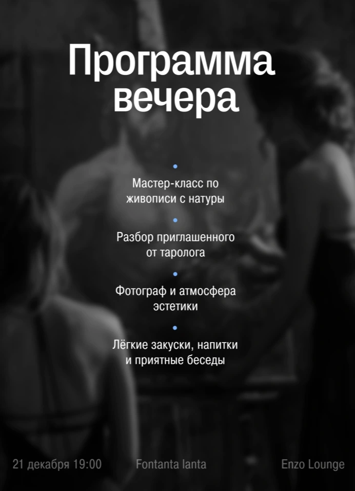 Арт-девичник в формате камерной вечеринки для девушек, которые любят красоту, глубину и немного волшебства.