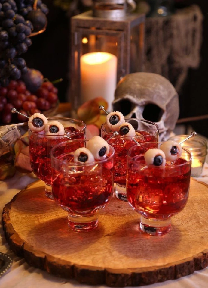 Это будет праздничная мрачная вечеринка друзей, просто ещё не все со всеми знакомы. Будет винное желе, кровавые шприц-шоты, пальцы ведьмы, загробный бутерброд-бар.