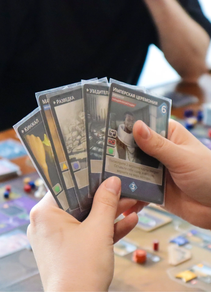 Тебе нужно строить железные дороги между городами и зарабатывать очки. Кататься будешь по Соединённым Штатам Америки — неплохой вариант вспомнить уроки географии. Разыгрывай карты составов такого же цвета, что и перегон, чтобы занять его. Растягивай свою дорогу по всей стране. И если наберёшь больше всего очков — победишь. В «Билет на поезд» можно играть от 2 до 5 игроков — то есть, дружеской компанией.