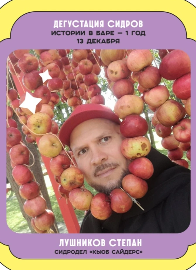 На дне рождения «Истории в баре» пройдёт встреча с Степаном Лушинковым, сидроделом, который проведёт тебя через 9 сортов их производства.