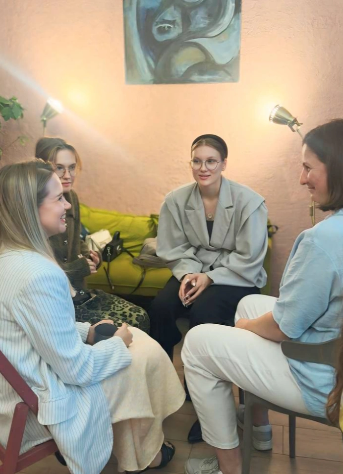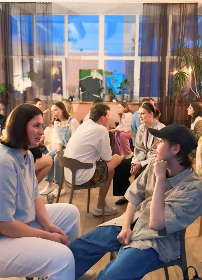 Впрочем, всё зависит только от тебя. А организаторы предоставят безопасную и комфортную среду для знакомств с чаем и сладостями, классных людей (других здесь не бывает) и очаровательную ведущую Полину, которая не остановится пока всех не перезнакомит.