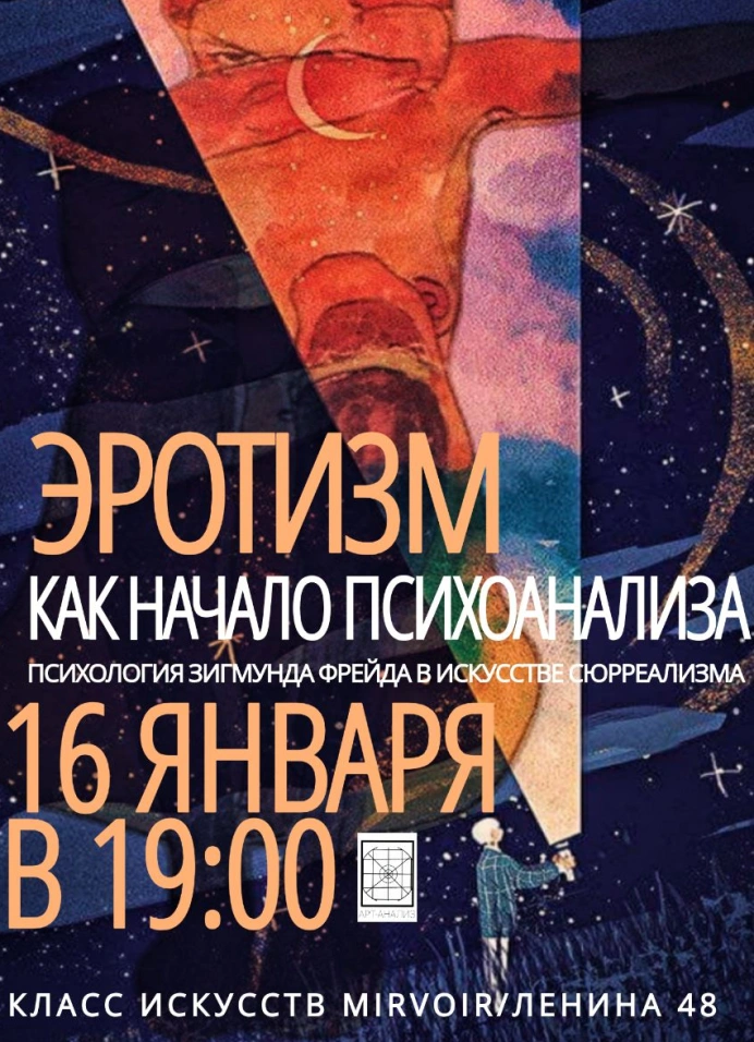 На занятии рассмотришь взаимосвязь между эротизмом и психоанализом и в контексте сюрреализма: