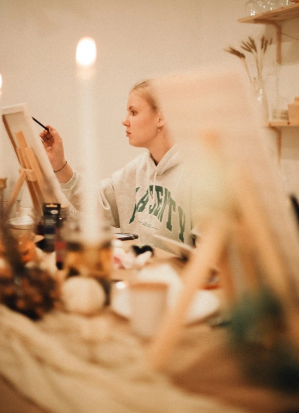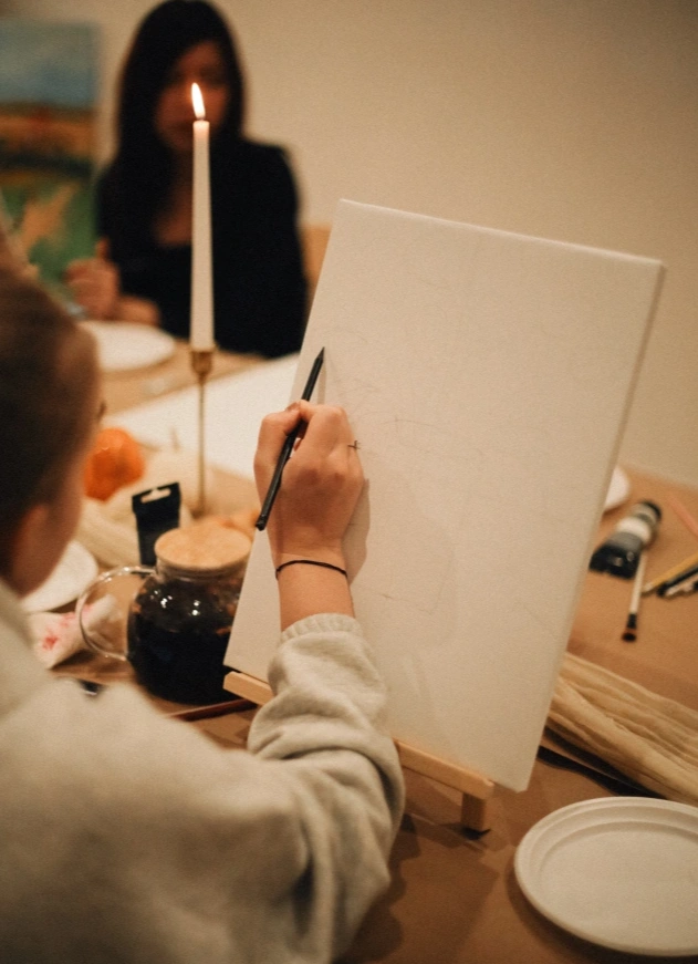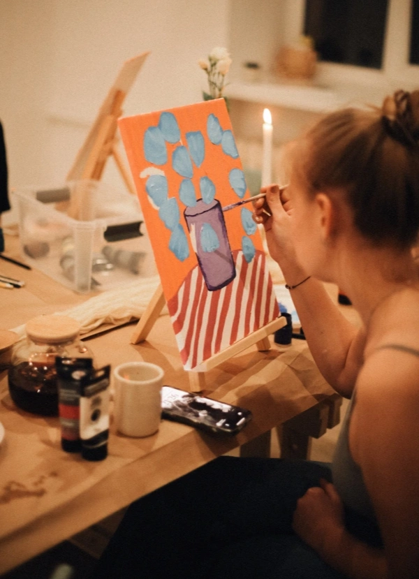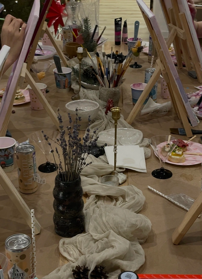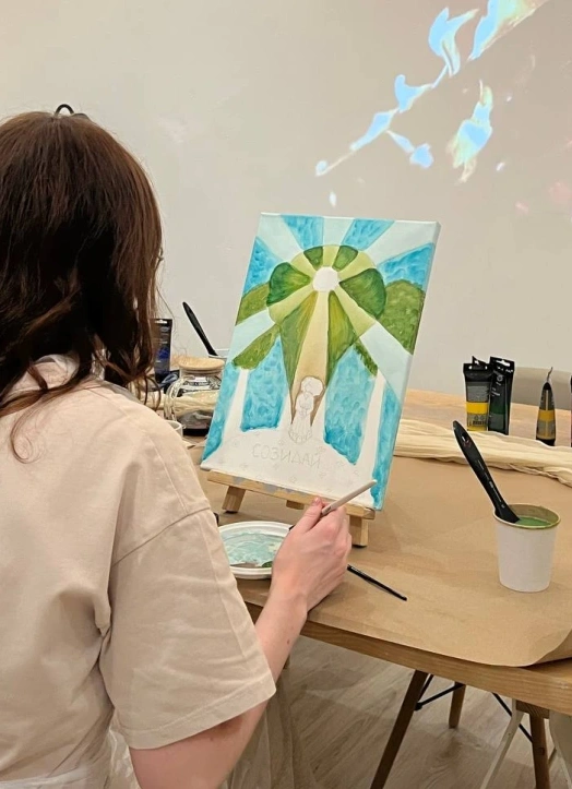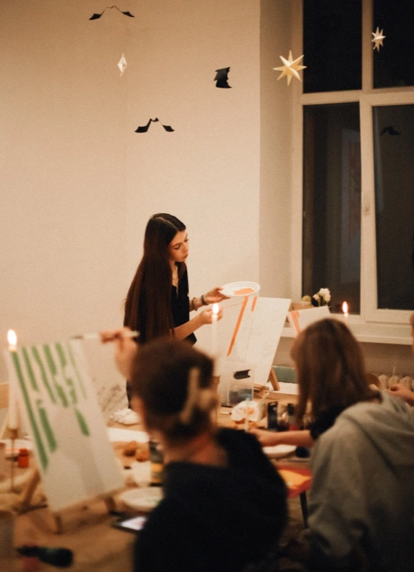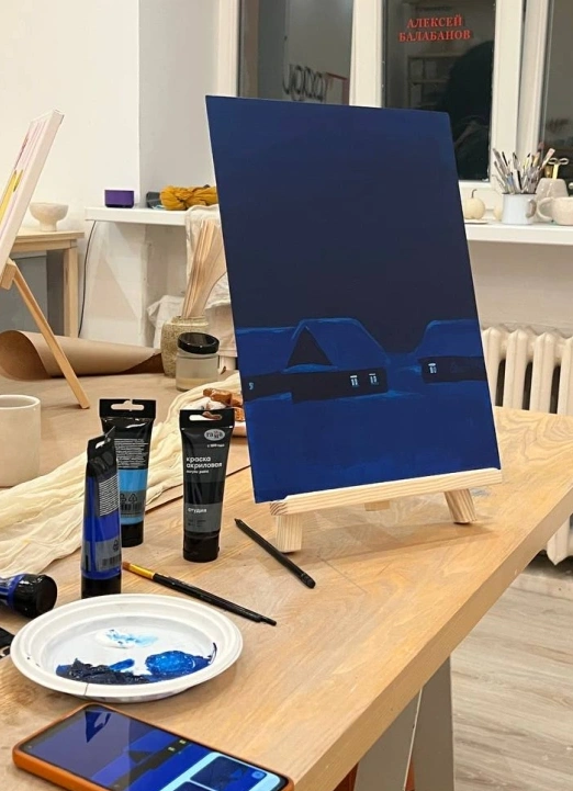 Гости приходят, и в уютной творческой атмосфере, при свечах, рисуют акрилом на холстах гусей. Организаторы поят чаем, на виниле играет лёгкая музыка.