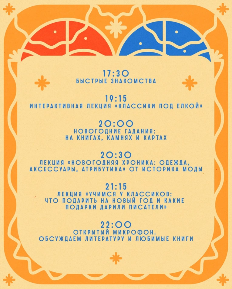 Не обойдут стороной традиции XIX века — будешь гадать на книгах, камнях и, конечно же, на картах. А в качестве комплимента весь вечер участники вытягивают новогодние послания от писателей.