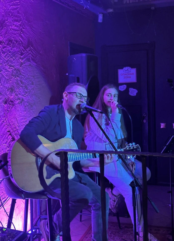 В этот вечер приходи петь и слушать музыкантов Мишу Мартюгина и Карину Баталову.