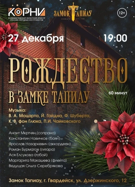 Замок Тапиау предлагает почувствовать атмосферу рождественской сказки и ожидания чуда под музыку великих композиторов в исполнении артистов Калининградского областного оркестра русских народных инструментов.