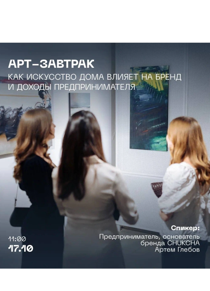 Арт-завтрак, посвящённый вдохновению и внутреннему балансу предпринимателя. Спикер — Артём Глебов, основатель бренда CHUKCHA — поделится личным опытом о том, как эстетика и атмосфера дома влияют на бизнес-решения, интуицию и эмоциональное состояние.