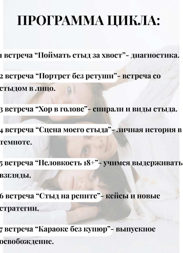 Кикл из 6 встреч про стыд от психологического проекта «Есть проблема».