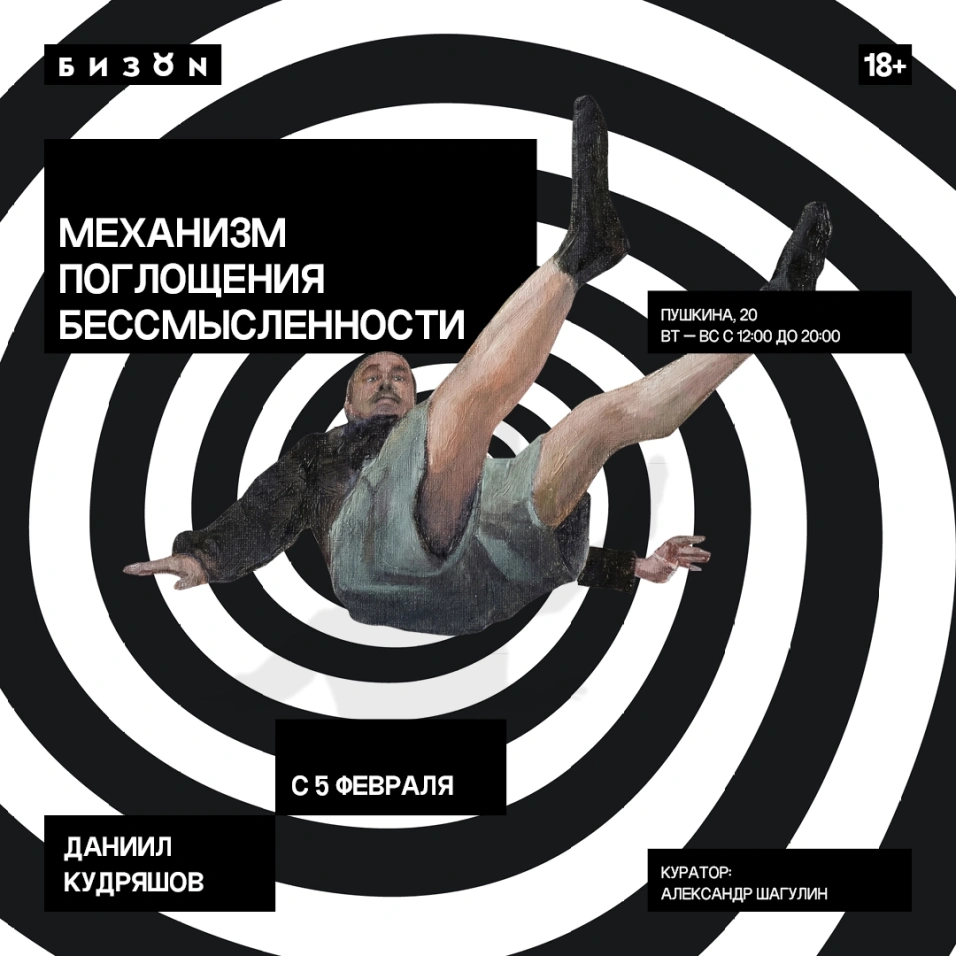 В экспозиции — новые работы Даниила Кудряшова, молодого московского художника, чьи произведения мгновенно становятся хитами рунета и уходят в коллекции звезд, блогеров и крупных корпораций. Он закрепил в актуальной живописи феномен российского абсурда как полноценную эстетику, редкий пример того, как современное искусство выходит за пределы галерей в широкий культурный код.
