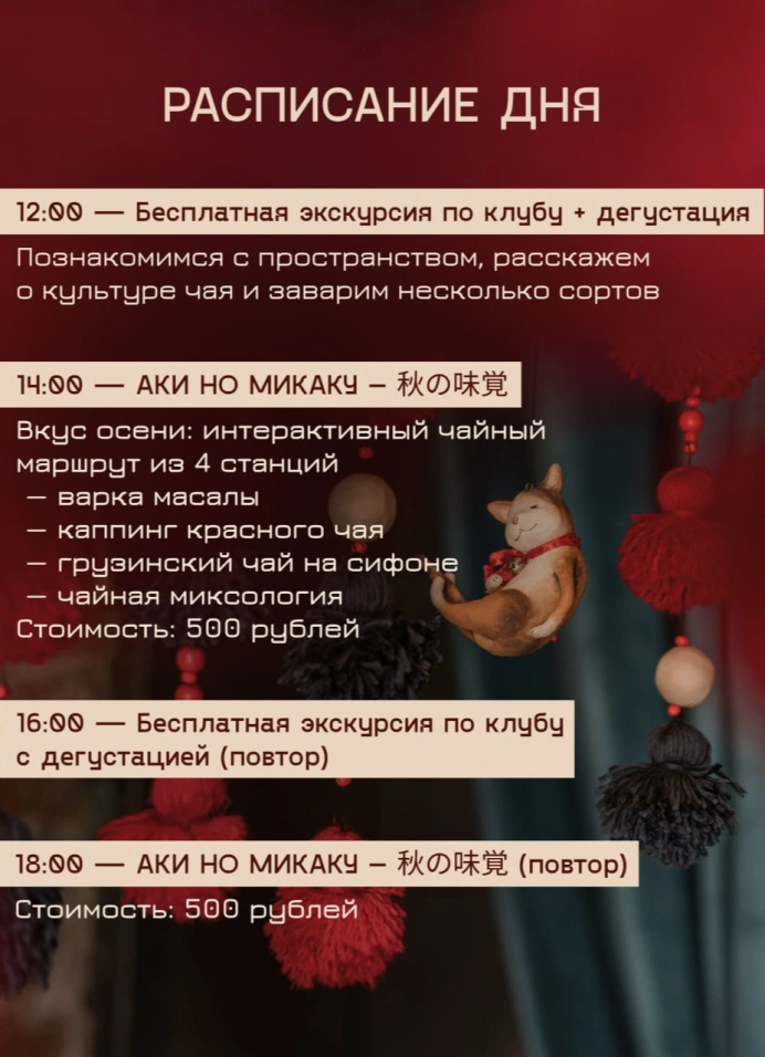 18:00 — АКИ НО МИКАКУ — интерактивный чайный маршрут по 4 станциям: