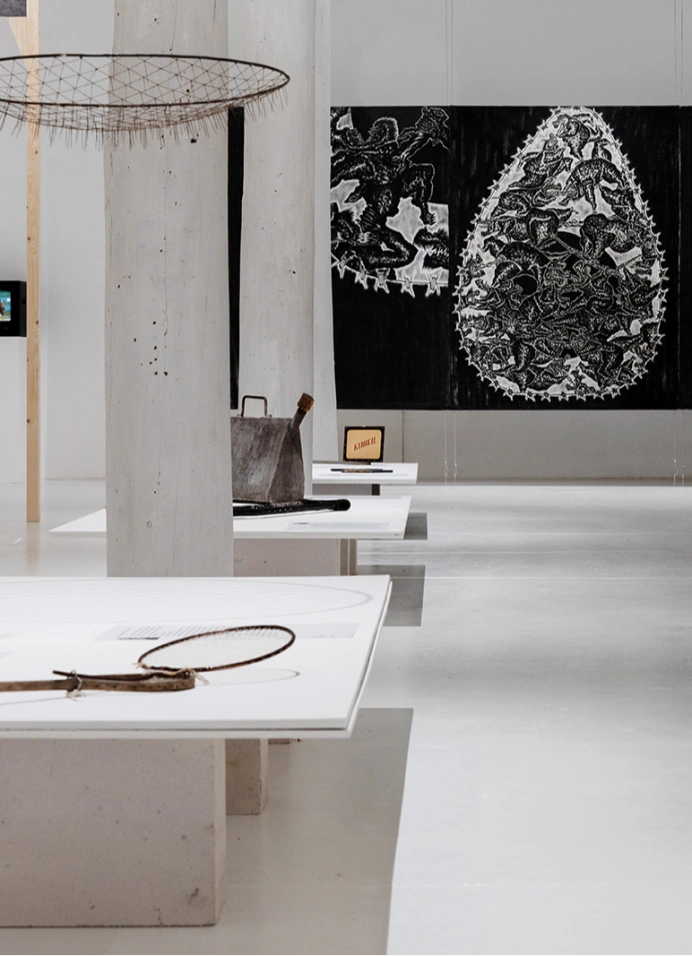 Выставка «На ножках» — первая серия масштабного художественного исследования переходного состояния, традиционно ассоциирующегося в мифологическом каноне с обиталищем Бабы-яги. Избушка на курьих ножках как портал в иной мир стала отправной точкой для художественных медитаций на темы тревоги, беспокойства, ежедневного соприкосновения с потусторонним.