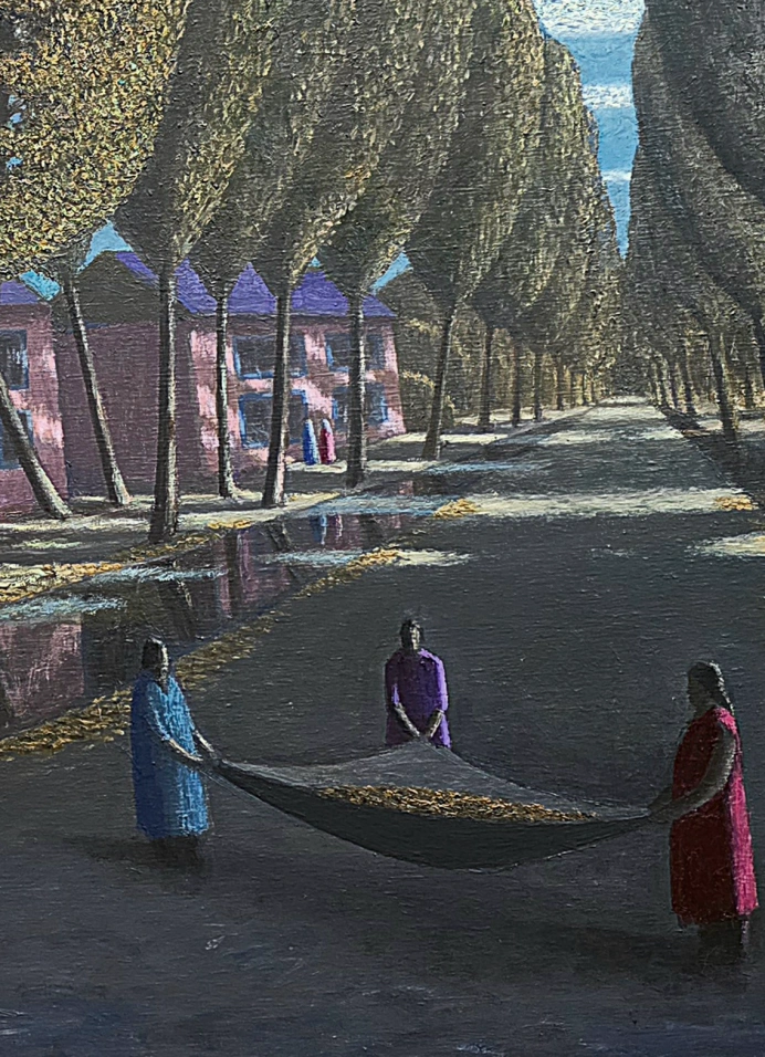 Виртуозный мастер цвета и фактуры, он погружает зрителя в удивительную вселенную, наполненную солнечными бликами и глубокими тенями, поэзией тихих улиц. В его работах застыли облака и древние горы, погруженные в размышления бабаи, женщины, будто исполняющие таинственные ритуалы.
