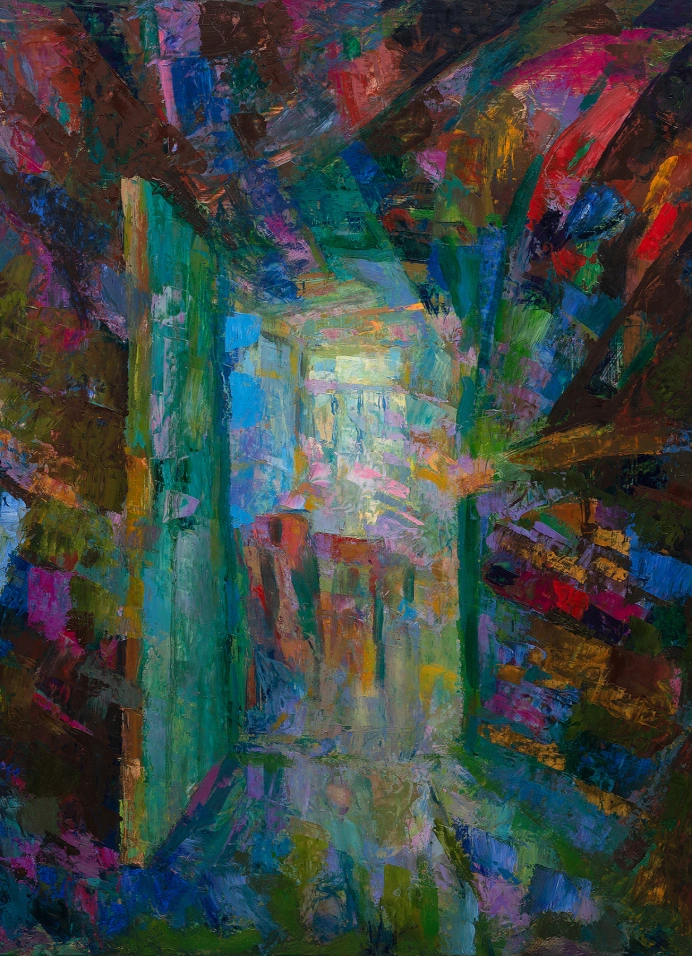 Так окружение Гурьянова — как человеческое, так и физическое, пространственное — стало сквозным мотивом в его искусстве. Однако он не писал предметный мир таким, каким он кажется. Живопись Владимира Гурьянова — это преображённая реальность. В его оптике мир сияет и переливается. Свет в картинах Гурьянова приобретает в динамические формы. Через них художник указывает на способность мира к постоянному обновлению и самораскрытию. Свет буквально озаряет пространство. Само пространство становится светом.