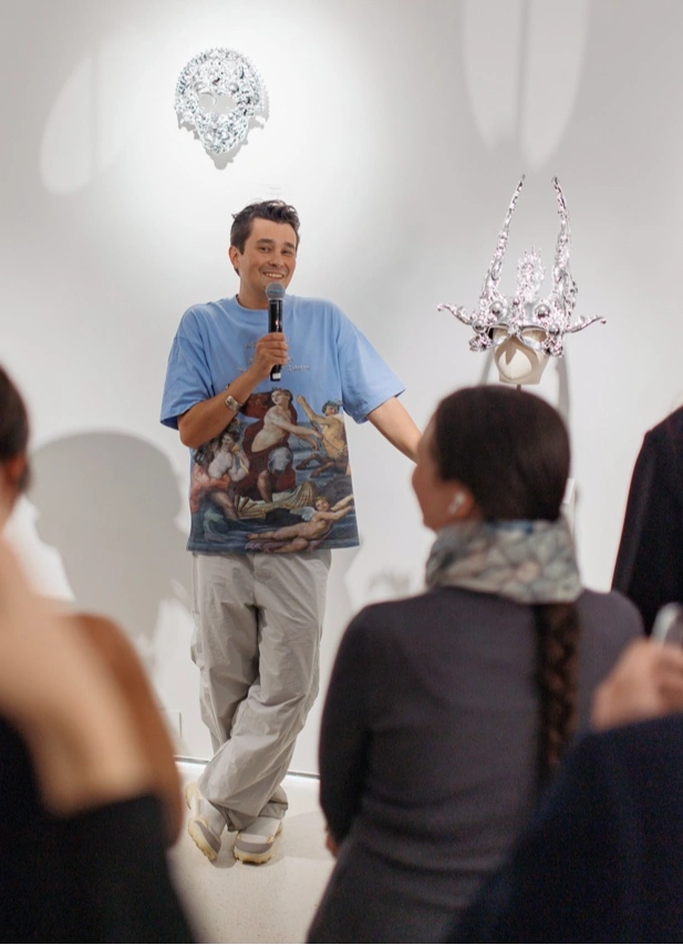 Заплетая в творческую ткань мифологию, поп-культуру и историю человечества, автор мыслит маску не только как коды и символы, но и как экзистенциальную метафору, визуально-философский диалог о природе человека и истории человечества, портал в наше мифологическое «я», которое выводит за пределы обыденности и отсылает к более искреннему и чувствительному, детскому способу воспринимать мир.