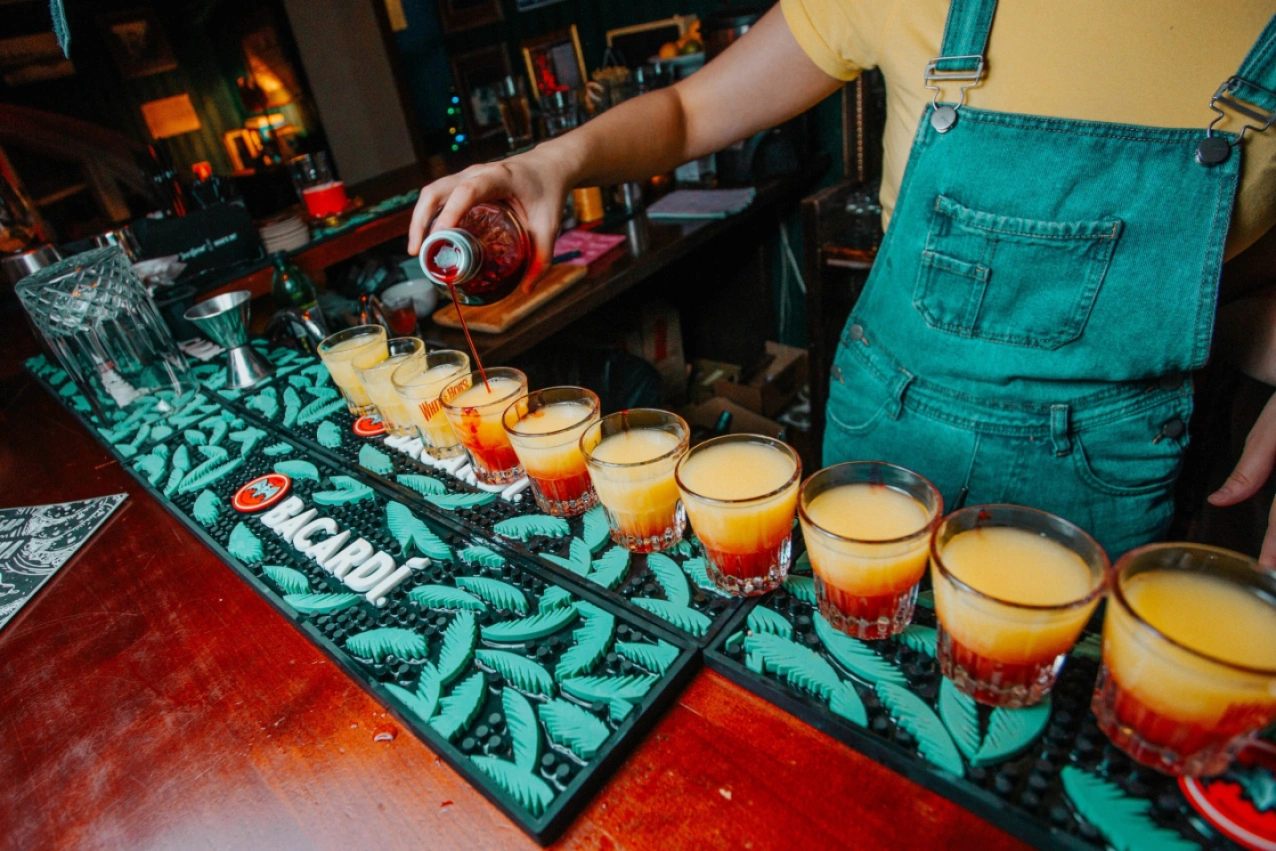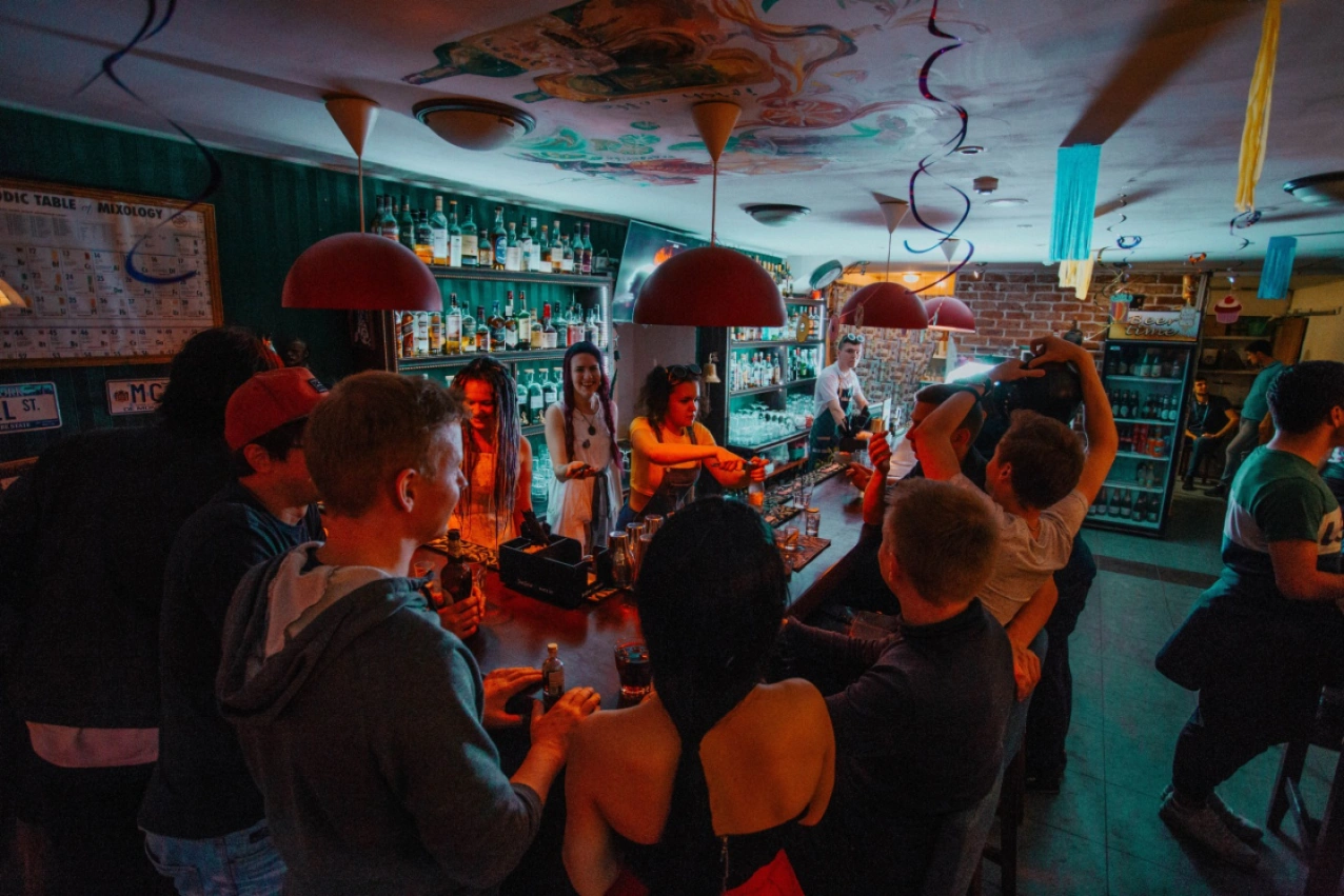 Уютный ламповый паб «Пятница» — это все виды напитков, поздняя кухня, стол для кикера, обеденная зона с диванами, активный бар, а также позитивный персонал и гости. Мы дружелюбны к гостям города и иностранцам (спрашивайте welcome drinks у барменов). Вы можете посмотреть спортивные трансляции с нами, мы всегда подскажем гостям о местах и достопримечательностях города. Если хотите покушать на воздухе — наша скромная терасса к вашим услугам.