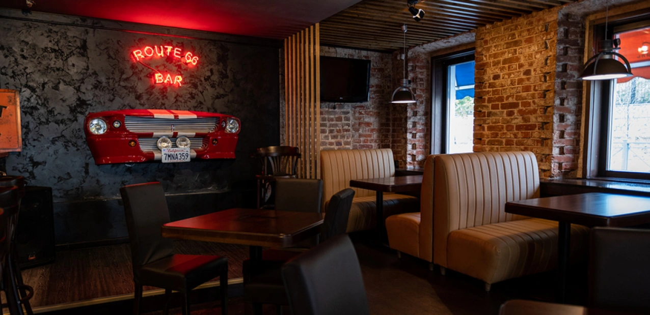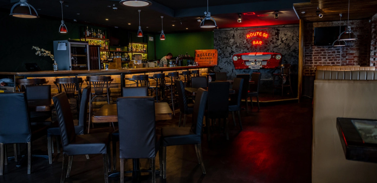 Атмосфера здесь должна погружать в субкультуру США эпохи роуд-муви, байкерских клубов, R'n'B и способствовать созданию комьюнити вокруг бара: упор не на количество посетителей, а на тех, кому близка культура, к которой отсылает бар, и кто захочет туда возвращаться.