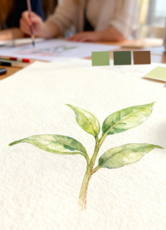 После этого перейдёшь к практике: вместе с педагогом студии создашь небольшую работу — ботанический сюжет с элементами роста, жизни и природных форм.