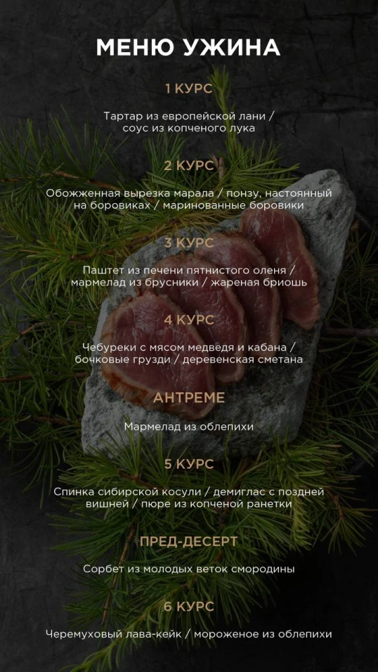 Тебя ждёт погружение в мир, где чистый дикий вкус отражается в авторском подходе к каждому блюду.