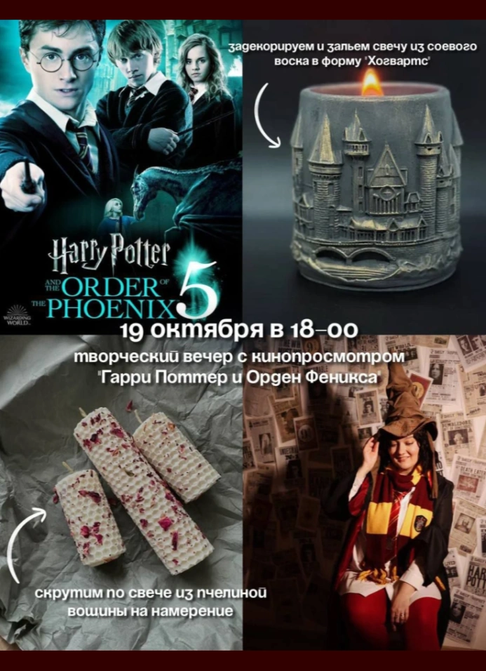 На мастер-классе ты задекорируешь свечу из соевого воска в форму «Хогвартс».
