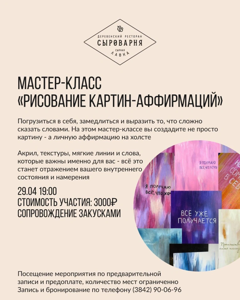 Мастер-класс сопровождается закусками.