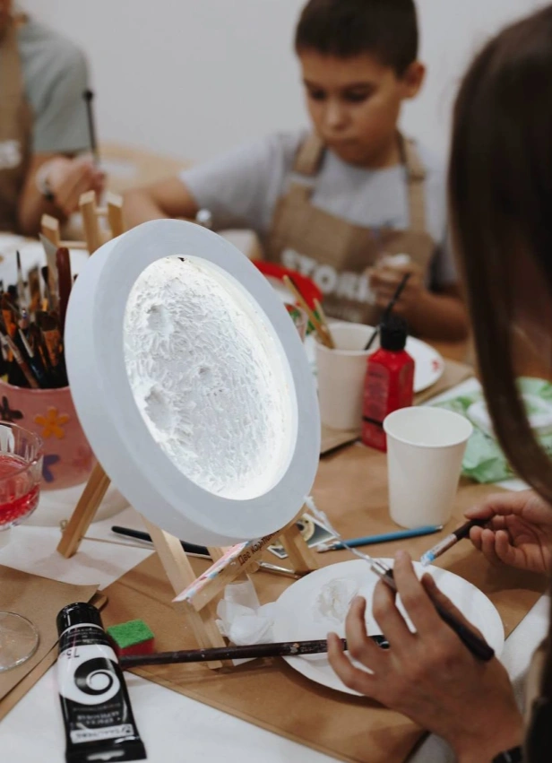Представь: днём у тебя стильная картина, а вечером — уютный светильник, который наполняет комнату мягким сиянием. Под руководством мастера ты создашь свою собственную «луну» текстурной пастой