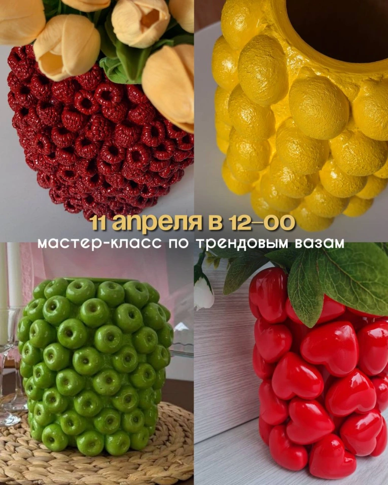 Творческий мастер-класс: яркие вазы с лимонами, сердцами, яблочками, малинками на выбор.