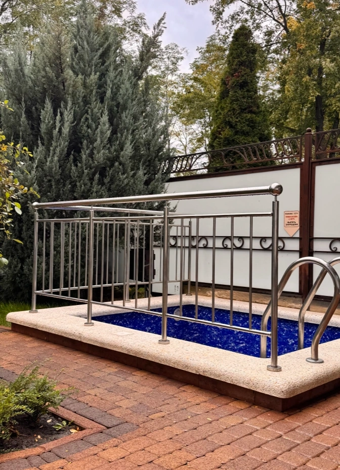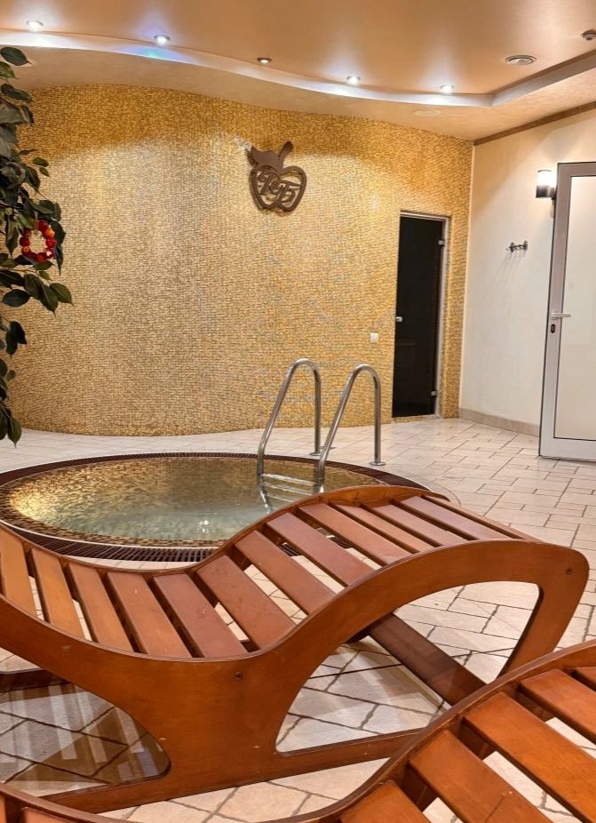 — Мини-бассейн глубиной 1,5 м с гидромассажным гейзером и подсветкой, тёплый;