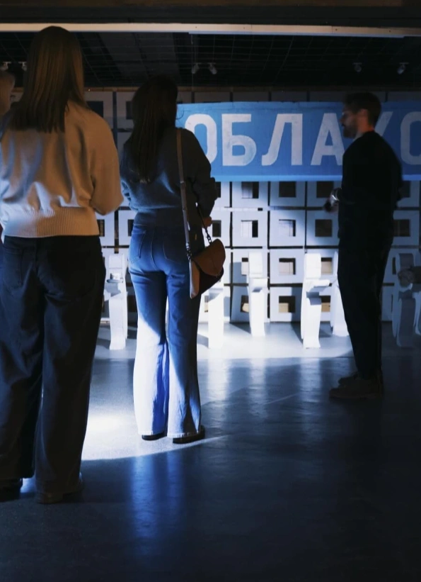Снизу-вверх по лабиринту «Площади Мира», до самой крыши с инсталляцией «Свобода», настолько близко к ней, насколько это возможно. Изюминка экскурсии — темный подвал, где музейный электрик десятилетиями собирает импровизированный фонд работ — от внутренних шуток до редких работ культовых художников.