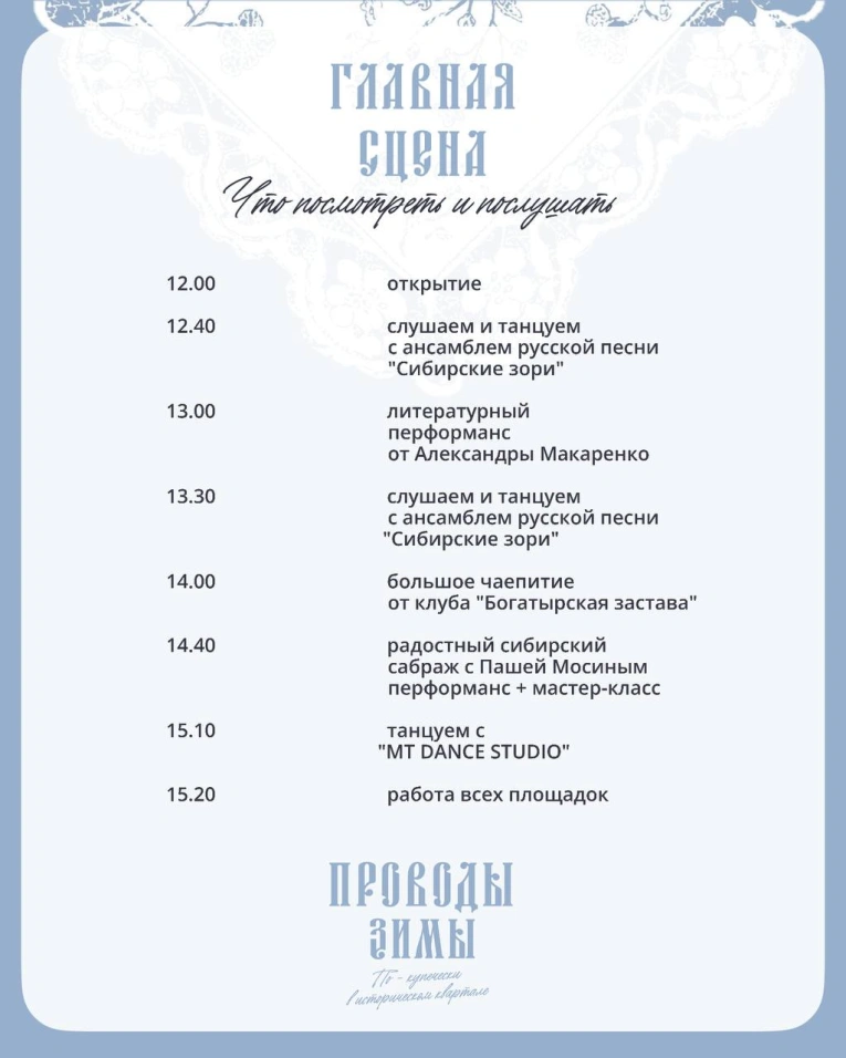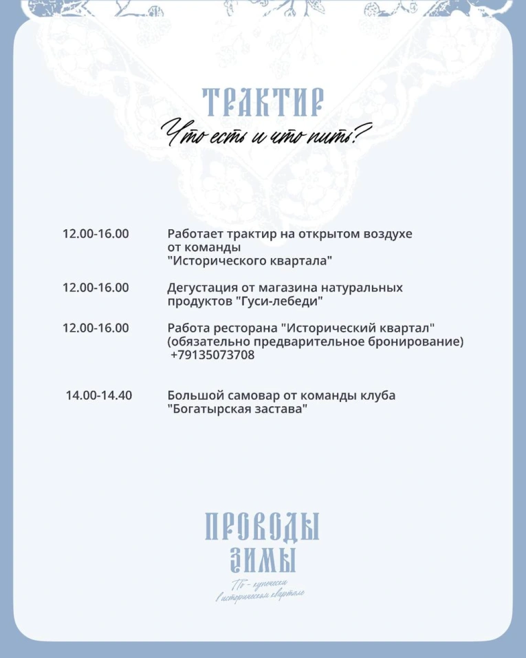 Готовь свою шубу, тулуп и платок — пора провожать зиму и встречать весну с песнями, большим трактирным самоваром, ухой из шампанского, настойками и сбитнем.