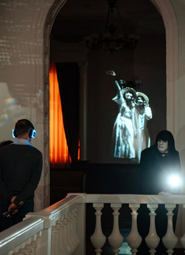 Каждый сеанс всего 15 зрителей смогут посетить театр в тёмное время суток, когда спектакль уже окончен, а театр пуст. Каждому участнику этой необычной мистической истории выдаётся специальное оборудование, которое позволит погрузиться в волшебный мир театра Пушкина и его призраков.