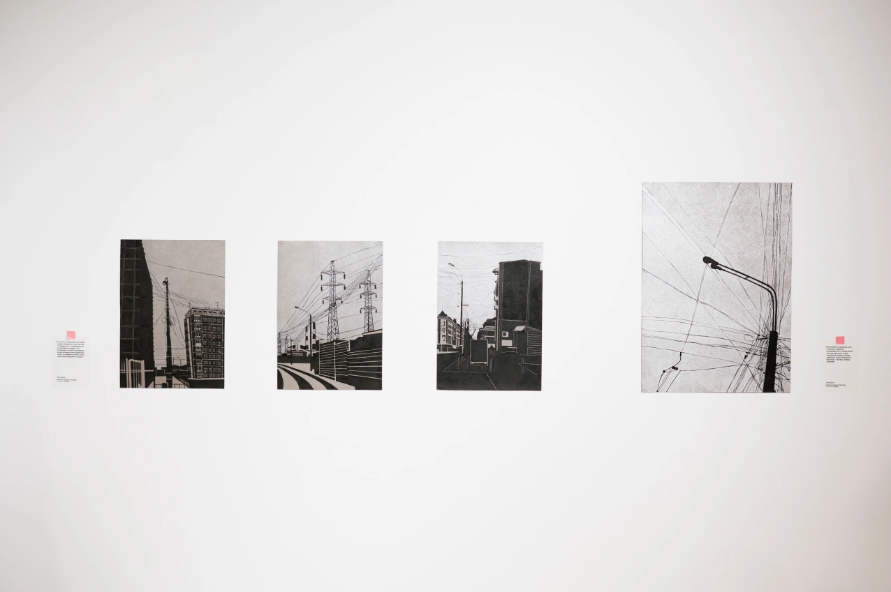 Выставка, посвящённая Красноярску, позволяет по-новому взглянуть на знакомые городские ландшафты. В своих индустриальных пейзажах художница всматривается в сплетения проводов и ритмы конструкций, чтобы через графику погрузиться в сложные ментальные процессы.
