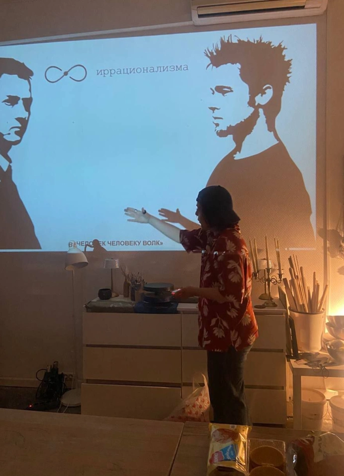 «Кот в мешке» — это формат лекции и кинопоказа, в котором фильм выбирается участниками прямо на встрече через метафоры и визуальные ассоциации. Название картины заранее неизвестно — это часть опыта совместного открытия фильма.