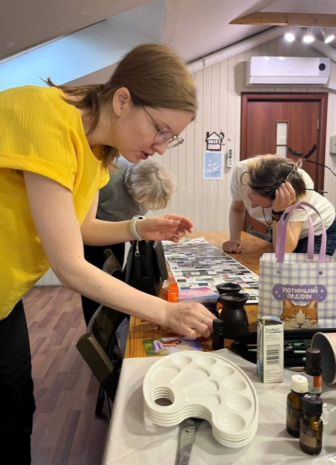 Ты выбираешь цвета, после чего начинаешь рисовать. Будешь выполнять работу при помощи фена. Тебе расскажут, как оформить и прикрепить цифры.