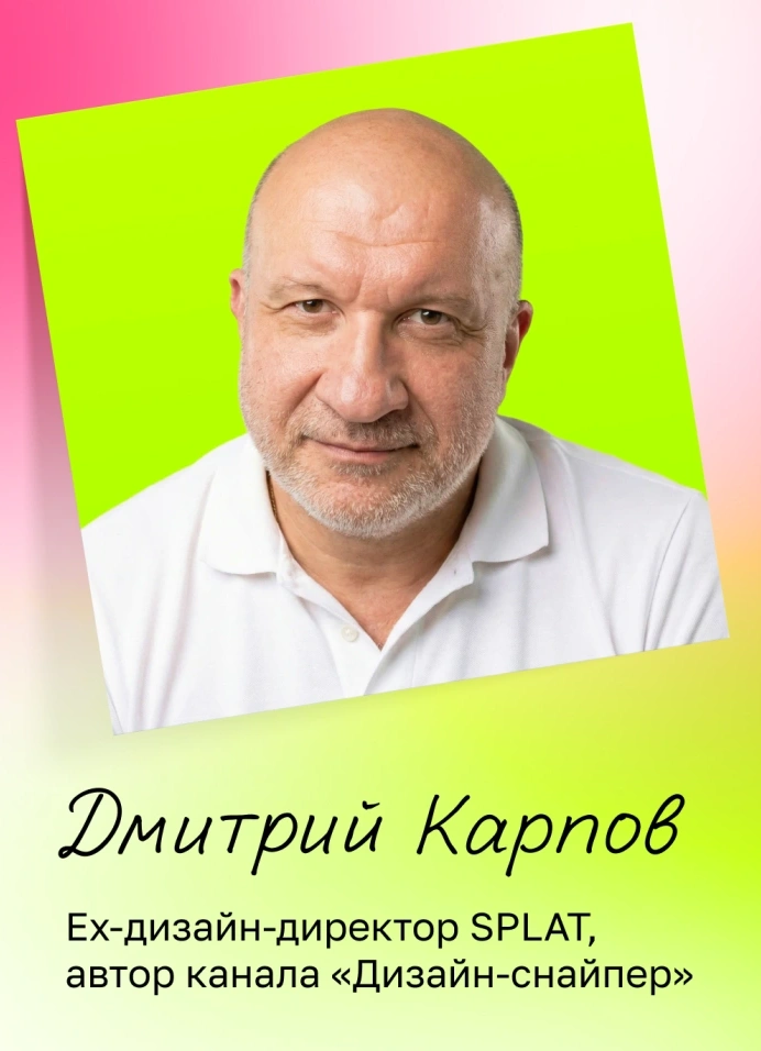 Дмитрий Карпов — ex-дизайн-директор SPLAT, Cyberus, автор книги «Мышление как инструмент», автор телеграм-канала «Дизайн-снайпер»;