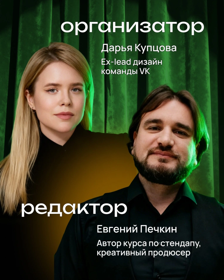 Пришло время упаковать в стендап твои нервные клетки. Поговоришь (и посмеёшься) о брифах, в которых нет ни слова правды и гайдлайнах, которые никто не читает.