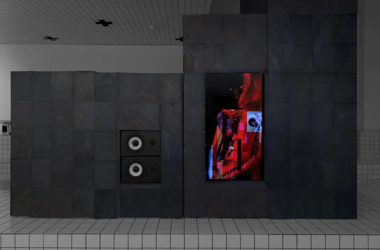В экспозиции — мультимедийная инсталляция и серия объектов, имитирующих выставочные пространства.