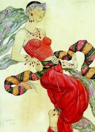 — утончённый Леон Бакст: восточная роскошь «Шехерезады», эротика «Послеполуденного отдыха фавна» и поэтичность «Призрака розы»;