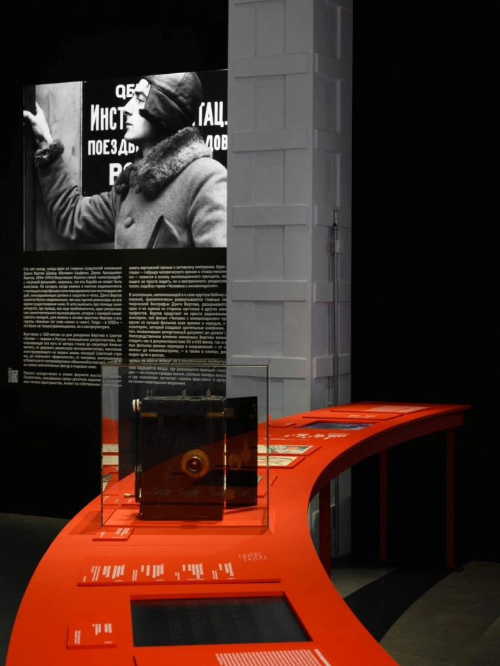 Выставка-фильм к 130-летию Дзиги Вертова — первая в России ретроспектива режиссёра. Экспозиция погружает в его вселенную: от концепции «киноглаза» и «жизни врасплох» до влияния на современную культуру (клипы, рилсы, документалистику). Главный манифест Вертова — «Человек с киноаппаратом» (1929) — признан одним из лучших фильмов в истории кино.