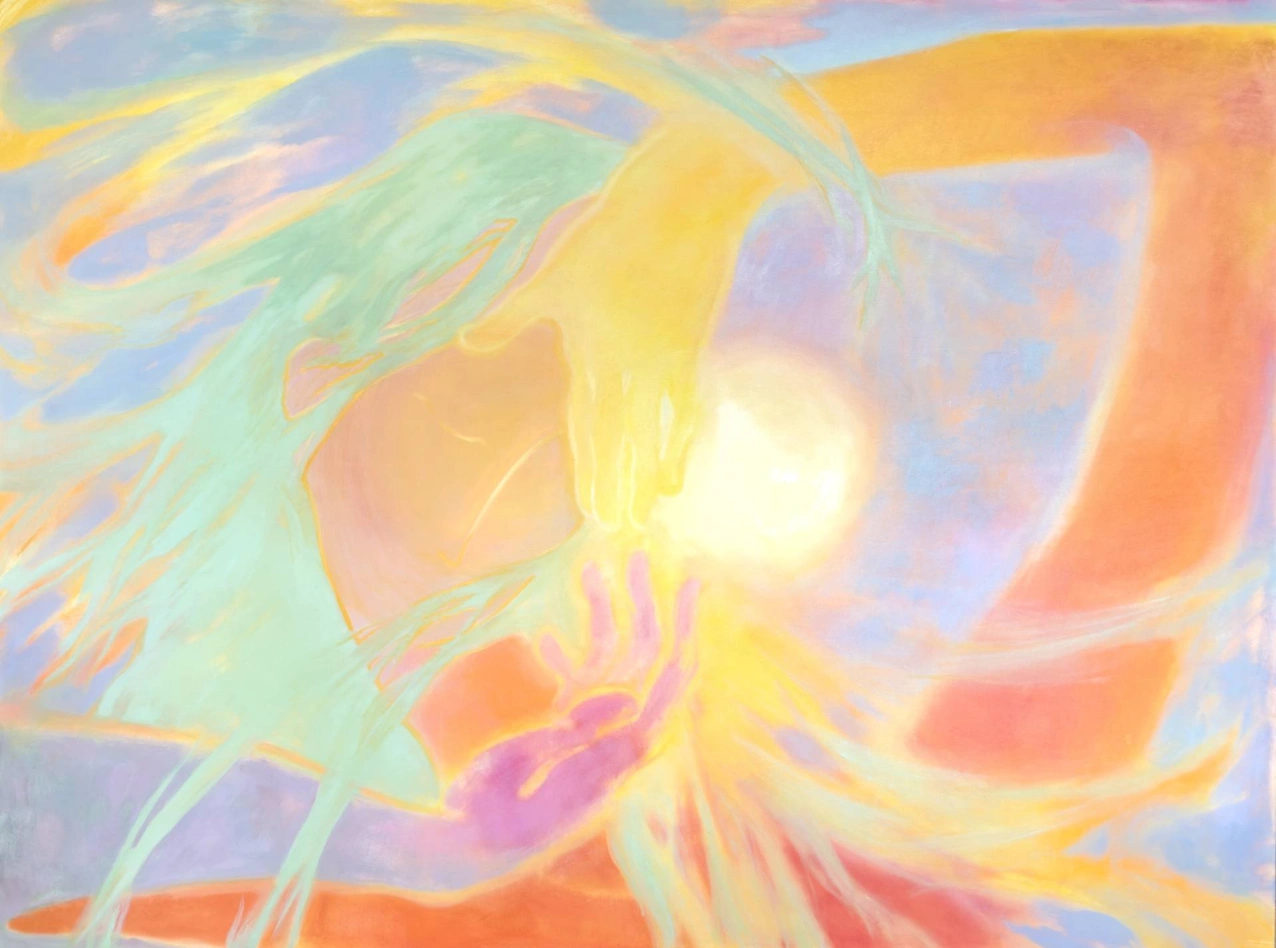Екатерина Богданкова для проекта создала серию, где главным символом женской силы стали руки, передающие эмоции точнее лица. Соединенные руки отсылают к самоподдержке и концентрации на себе: сила возникает там, куда направлено внимание. Цветная «аура» символизирует распространение внутренней гармонии вовне. Три работы последовательно показывают разные состояния силы: чем глубже фокус на себе, тем статичнее фигура и лаконичнее цвет.