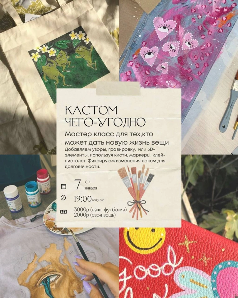 Мастер-класс, на котором ты создашь вещь, которой точно ни у кого нет. Будешь рисовать на футболках, джинсовках или джинсах специальными красками, которые не смываются.