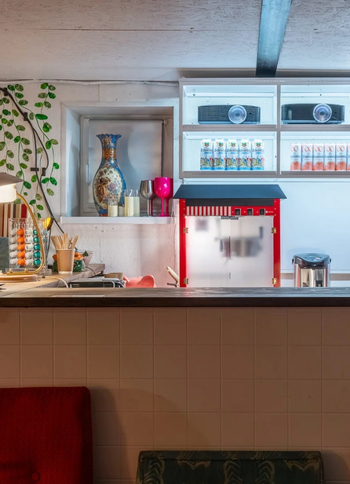Кинобар — это закрытое пространство на крыше. Из Кинобара всегда можно выйти на основную площадку — на крышу под открытым небом.