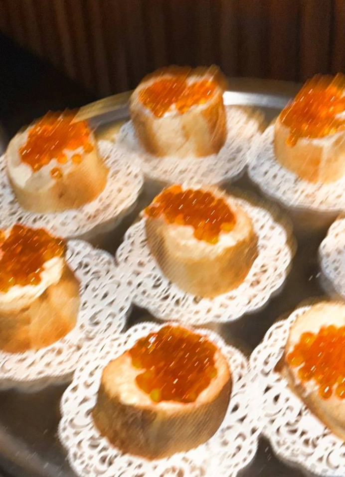 В меню: бутерброды с икрой и взбитым маслом, стейки из фермерской тыквы с камамбером, сочная мясная лазанья и гигантская золотая павлова. Из напитков: просекко с ягодкой, безалкогольный лимонад и гречишный чай.
