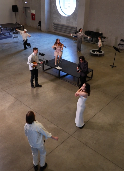 За полтора часа до основного события зрители смогут принять участие в подготовительной практике Embodied music (телесная музыкальная практика), включающей движение и вокальные упражнения. Этот этап позволяет глубже погрузиться в структуру произведения и подготовиться к партиципаторному формату.