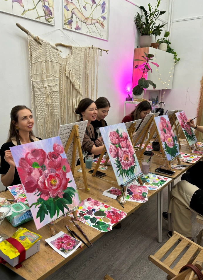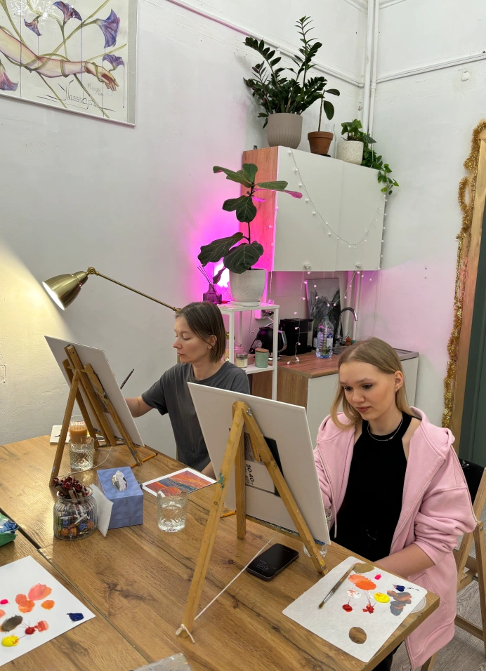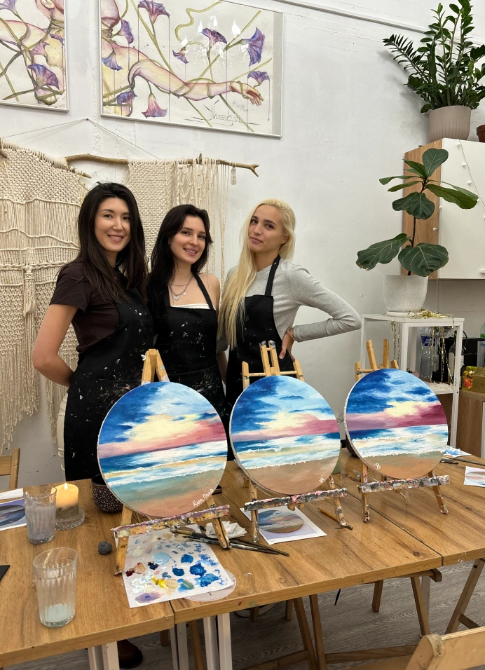 Мастер-класс, где ты сможешь за одно занятие написать собственную картину. Подходит для людей без опыта рисования, художники помогают в процессе.