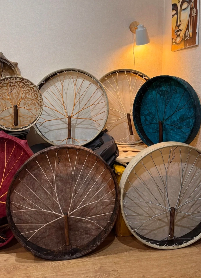 Научишься проводить практики с шаманскими бубнами — игра на традиционных музыкальных инструментах поможет создать атмосферу для многих практик, звукотерапии и медитаций.