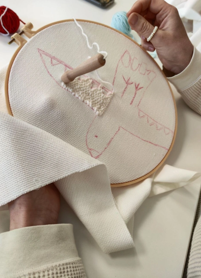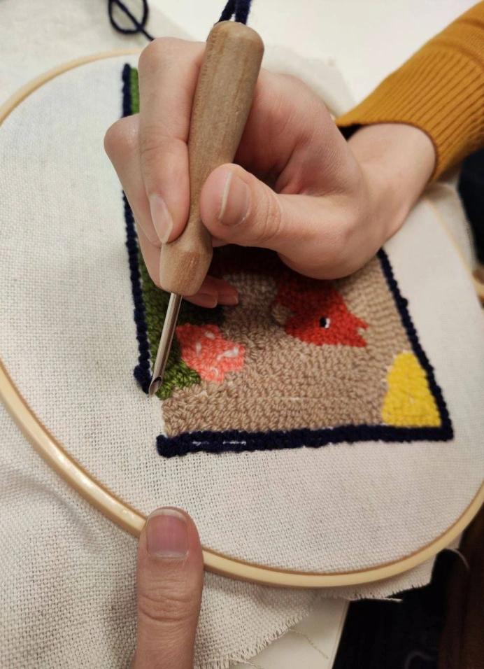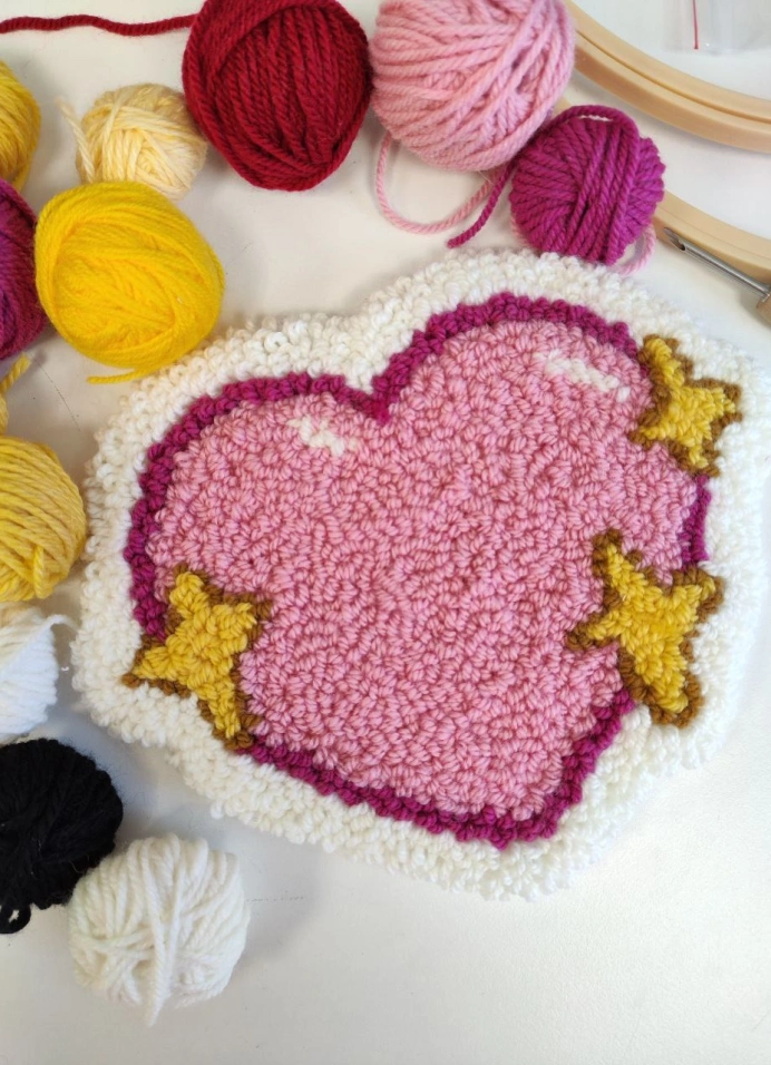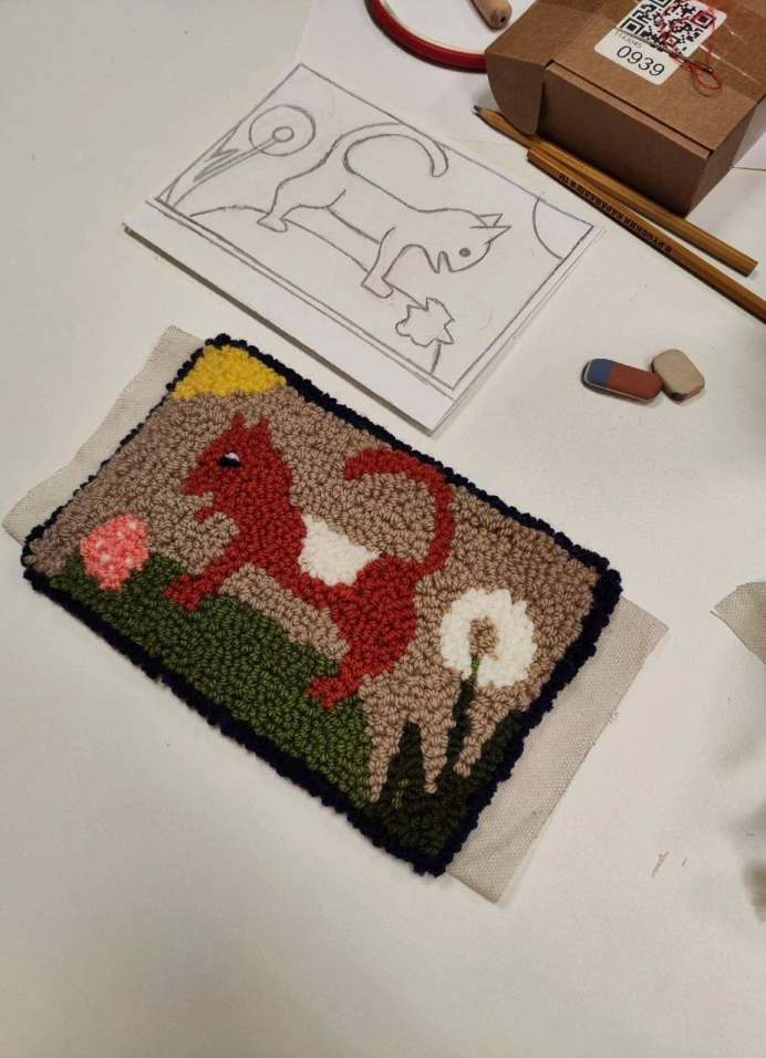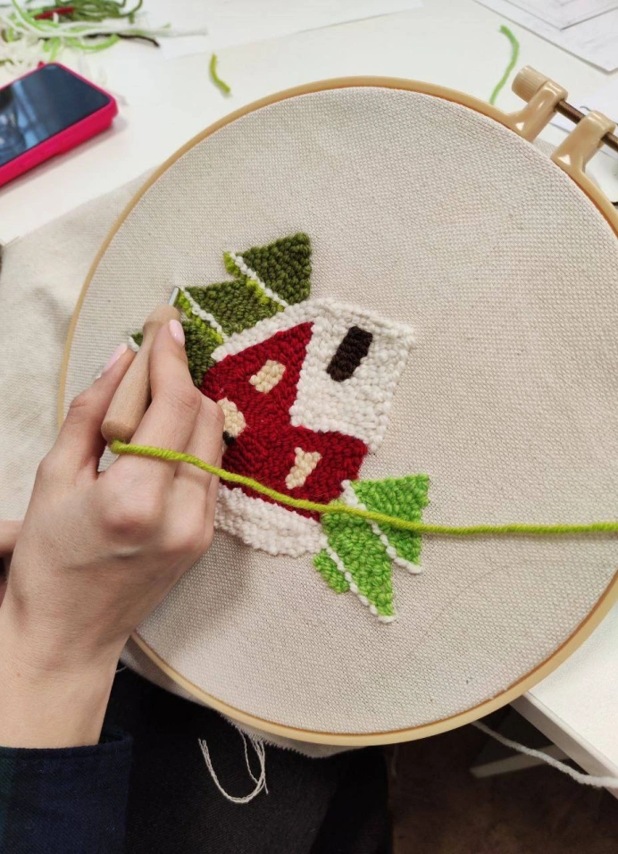 Ты сможешь освоить петельную технику вышивки с использованием специальной ковровой иглы и оформить её в новогоднее панно-подставку или ёлочную игрушку.