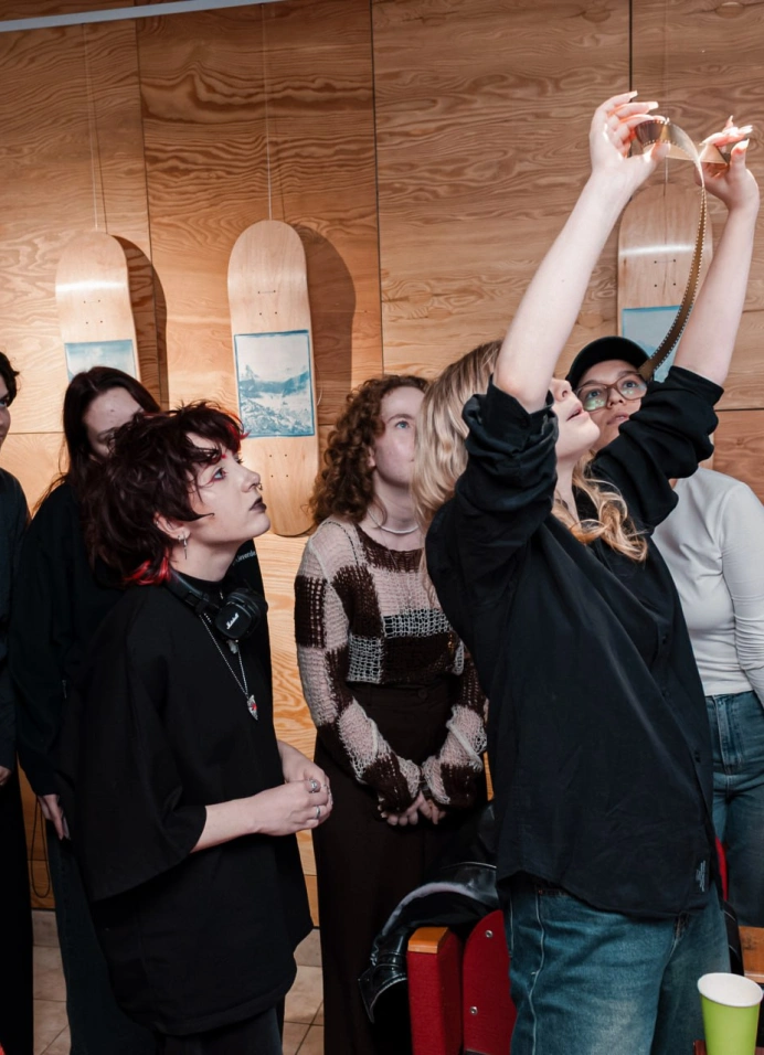 Под таинственным красным светом лаборатории ты проявишь свой первый кадр, созданный без объектива и электроники — только свет, маленькое отверстие и волшебство физики.