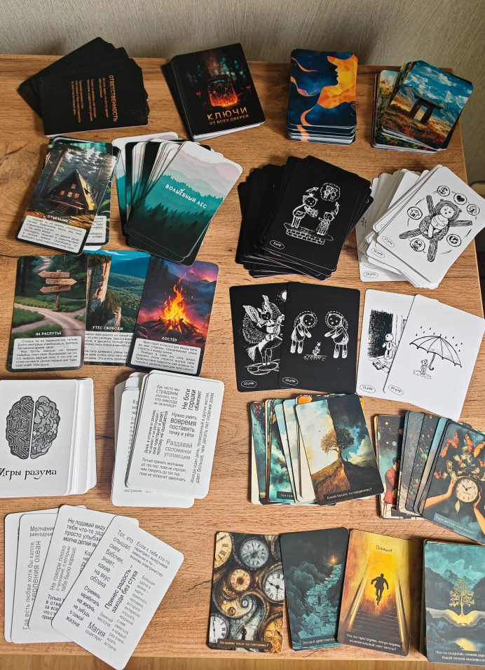 - В каждом раунде — новая тема, новая группа и новая колода метафорических карт;